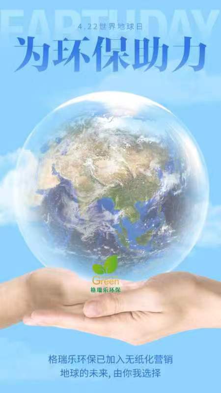 4 月 22 日世界地球日,格瑞樂環(huán)保,為地球發(fā)聲,為環(huán)保助力,讓我們攜手共進(jìn)!